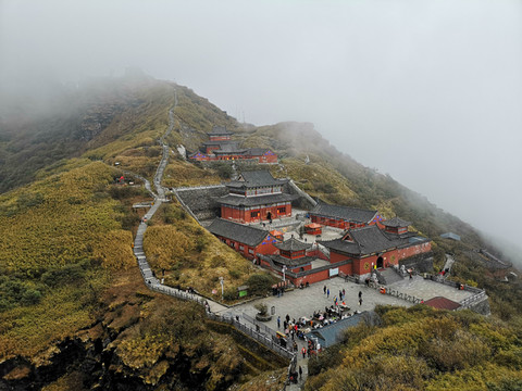 红云金顶:山峰直立高达百米,上半部一分为二,由天桥连接两端。两边各建有一庙,一边供奉释迦佛、一边供奉弥勒佛。红云瑞气常绕四周,人称红云金顶,谐“鸿运金顶”。状若飞天游龙,又似佛手二指禅,更像人类的生命图腾,根据其形而又称“天下第一峰”。