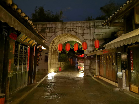 背街:是青岩最具特色的一条石巷,路面的青石板经过几百年的冲刷、磨砺,已光可鉴人,如镜面般泛着青黑的光芒,给街巷带来一种独特的时空感与神秘感。街边都是层层片石垒起的院墙,路窄而幽静,沿山势起伏,是摄影的绝佳地点。