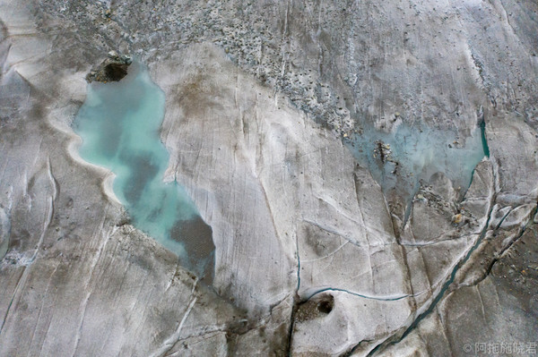 我和阿东沿着冰舌右边的缓坡慢慢走上了冰川,但我那个心啊,都是紧绷着的,我的鞋子,一看就不是专业的,又下着雨,时不时打个滑,我还背着相机和无人机,简直了,下冰川时我就差跪下来走完它了。可是能够近距离的看到冰峰、冰 塔林 和冰舌,已是十分满足!