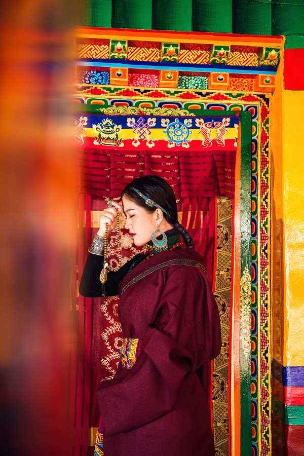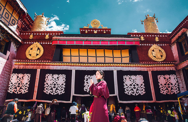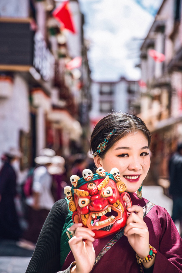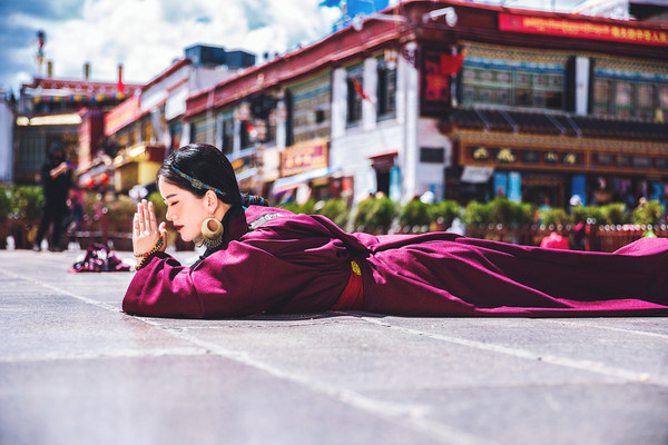 这次正好在布宫售票处旁边遇到了风马映像,换了个喜欢的藏装拍了一组照片。我选择的拍摄点当然是八廓街。八廓街,它并不大,磕长头一圈两小时就转完了。可是它却让每个住过这条街的人魂牵梦绕,早就想要好好地拍一组属于我的八廓街,也算是实现了。