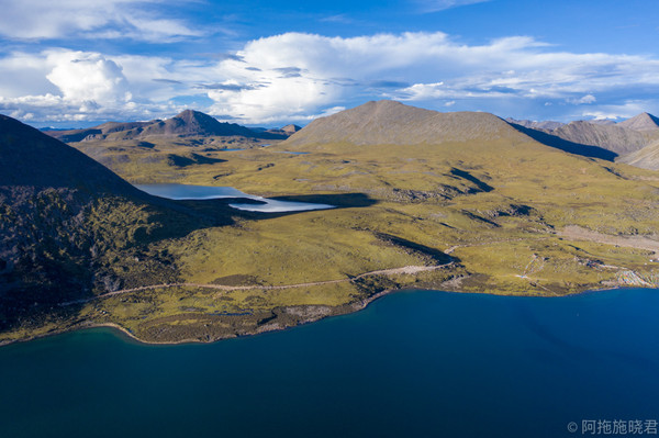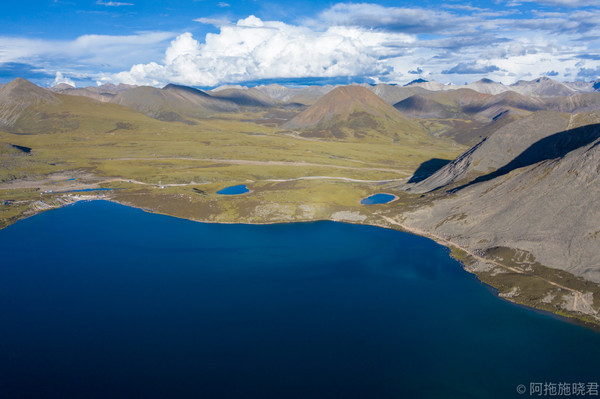 西藏 的湖泊总是美得让人想哭,思金拉措,藏语意为“具有威力的神湖”,这是我玩无人机的第九天,还不是很溜,所以也只敢近距离飞飞。回头再看照片,我应该飞个500米高,看看思金拉措的地形,她就如同一个聚宝盆一样,四周群峰簇拥,很有气势。
