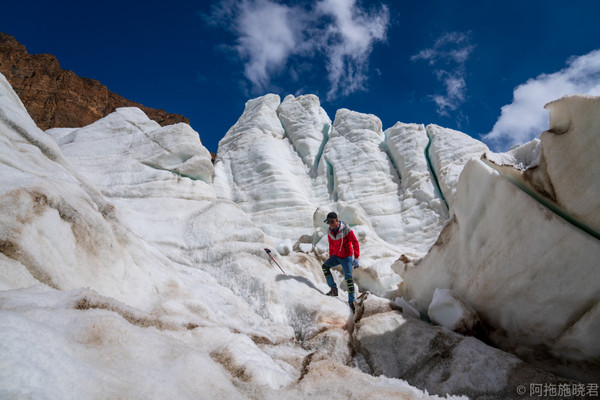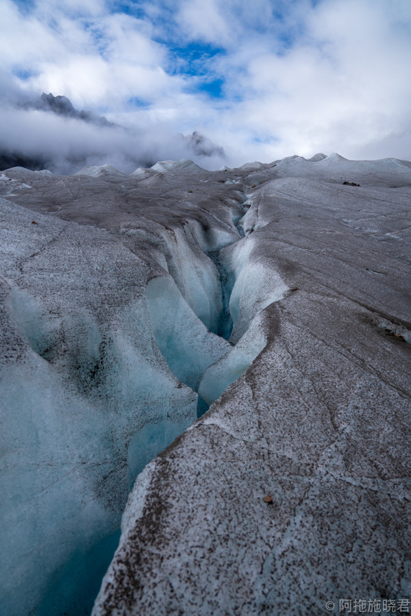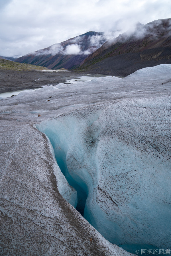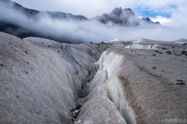 第二天天一早,下着小雨,我和阿东徒步前往冰川深处,即使我们痛苦地扛着高反和寒冷,没有看到星空(月亮太大啦),也没有看到日出(下雨了),并且冒着危险(冰裂缝很吓人),但也不枉此行!