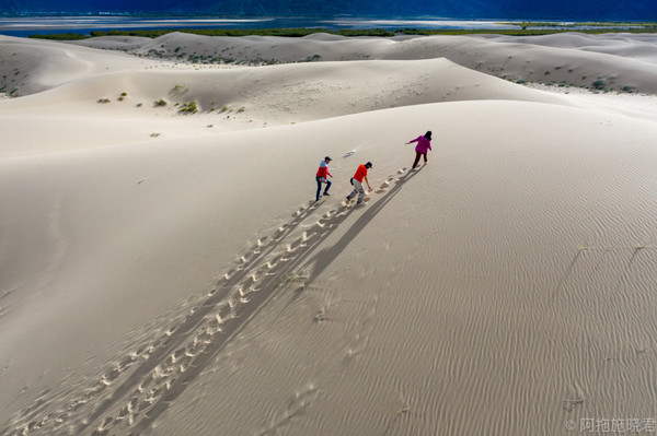 我们几个人在沙漠上玩得可嗨,扎囊沙漠的沙质柔软细腻,在上面玩沙很温暖。确实是挺特别的,雪山、河水和沙漠竟然 会同 时存在在一个空间里,大自然真的是鬼斧神工,什么样的沧海桑田都制造得出来。真羡慕我生长在 中国 ,真羡慕我经常来 西藏 ,可以看到这么多美丽的画面。