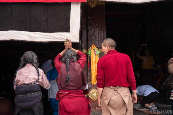早晨醒来,来到大昭寺门口,等着点灯房开门,正午12点,当喇嘛将点灯的工具递到我手上时,灯架上的长明灯一盏盏地被点燃,我进藏十七次,这是第一次私心为你点灯,完了以后我在大昭寺前磕了108个长头。愿你,在另一个世界里过得安好,步入一个美好的轮回。