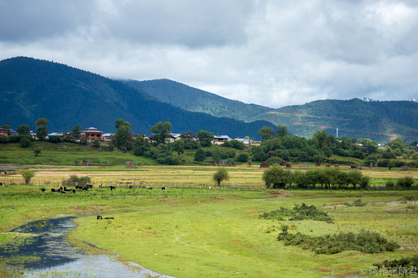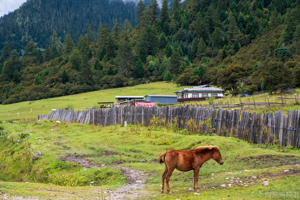 这一路上,停下车来等饭时,我都会带着相机出门到处转转。鲁朗小镇的田园风很有 瑞士 的感觉,鲁朗在藏语里的意思是“龙王谷”,也是“叫人不想家”的地方。