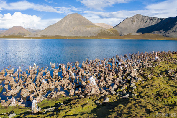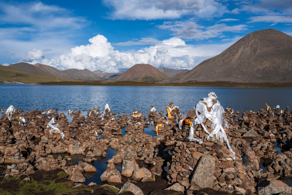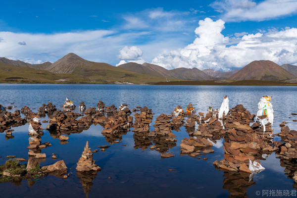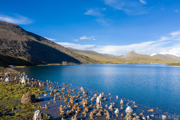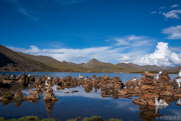 嗯,就算不发财,坐在湖边,看着这一堆堆的玛尼石,湖畔的风吹而过,也不失为一个美好的下午。