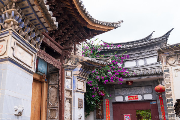 喜洲 最引人注目的是白族建筑。这里保存着最多也是最好的白族民居建筑群,行走在古镇中,你是不是都能看到那些三坊一照壁的白族庭院格局,每个沿街的房子都被开发成不一样的店面,抬头一看,高大的门楼上,翘角飞檐、斗拱重叠,实在太美丽了。