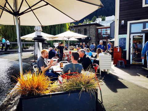 在皇后镇,坐在瓦卡蒂普湖边,约三五好友聚餐,是一件惬意的事。