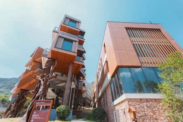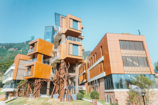 树屋山居酒店外观契合山势,宛如参天大树般支撑起嵌入式、吊脚式的树屋客房。
