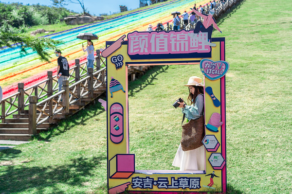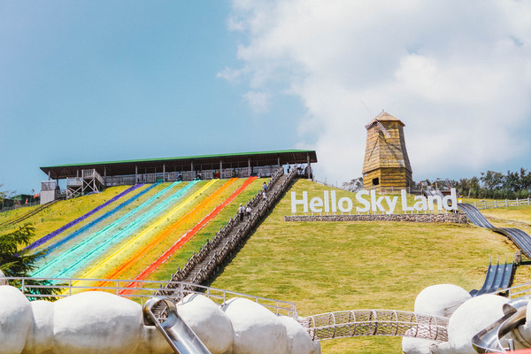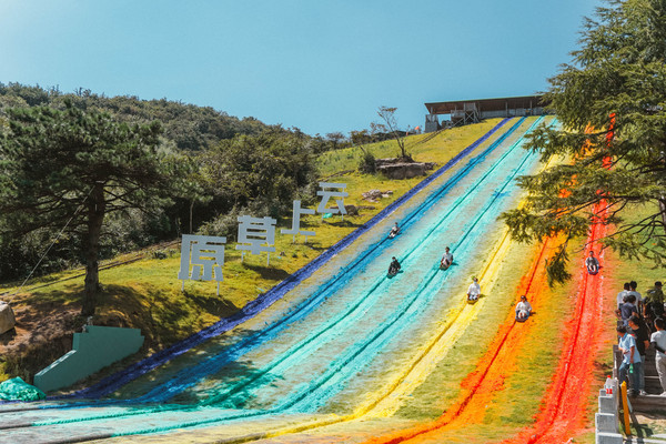 下了缆车后直奔无动力公园,彩虹滑草是人气网红项目,彩虹色的滑道着实吸引眼球。