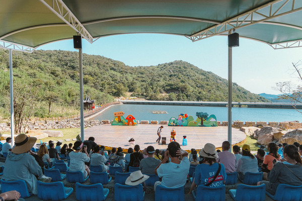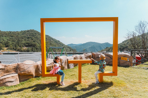 童心谷倚靠山上的天然水库,环境优美,是一片依山傍水的风景胜地,为了不浪费眼前美景,景区特地设置了鸟巢、蓝窗、黄门、月亮秋千等适合打卡拍照的装置,随手一拍人人都是摄影师。