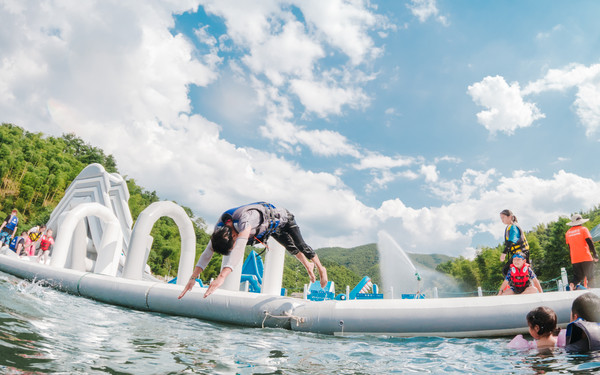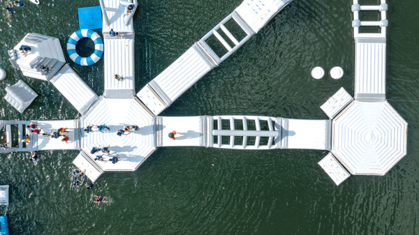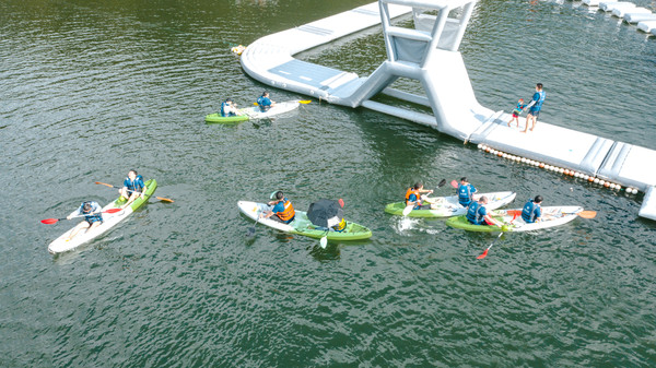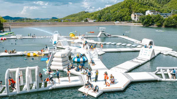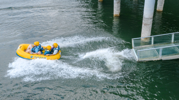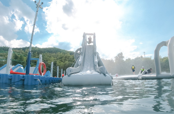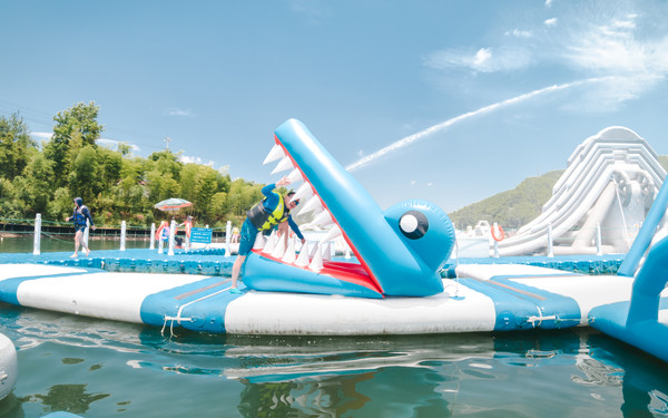 漂浮闯关平台。竞技闯关游戏欢乐多,扑通落水享受也不错。城市里汗流浃背,不如此刻,酣畅淋漓。这里有独木桥、大滑梯、水上跷跷板、气垫等环节。此外亲子区适合年龄较小的孩子。