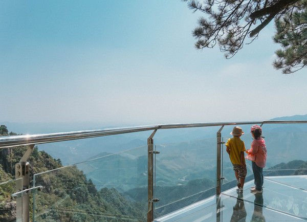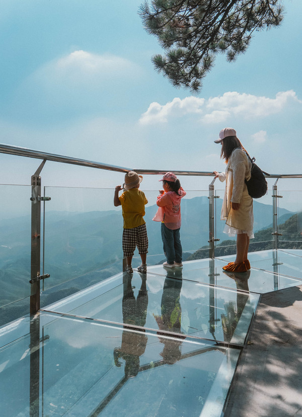 水晶廊桥是全透明的玻璃廊桥,仿佛凌空于天地之间,对恐高族是个挑战,反正元宝和涵涵是走得开心极了,恐高?不存在的。