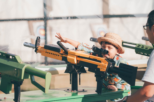 游艺射击馆比较适合男孩子和爸爸一起体验游玩,装上弹珠,瞄准靶心,最酷与最开心的就是射中的那一刻了。