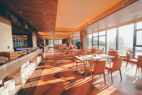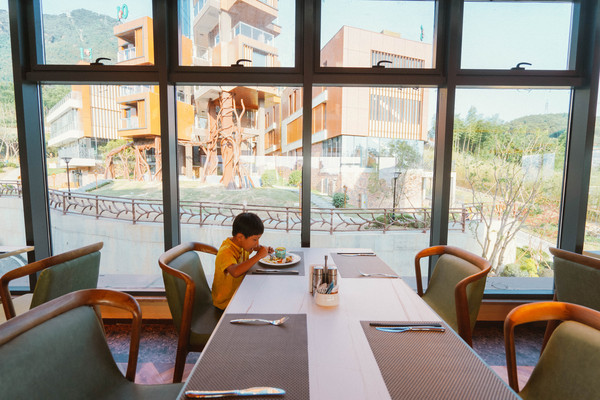 我们买了酒店一价全含式的套餐,适合像我们这样带着孩子出来旅行的亲子家庭,不仅有自助早餐,还带自助晚餐,餐厅位于酒店大厅所在楼层的3楼,全景落地玻璃最大程度的将风景引入其中,晚上夜观繁星,清晨阳光倾洒,分外迷人。