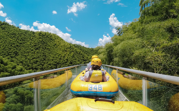2km长、120米落差的竹尖漂流,安吉一绝。当水闸开放那一刻,你Fun开了,TA开Fun了。全透明玻璃滑道,水花飞溅,山风扑面。