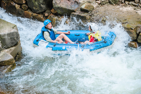 竹海漂流,清凉惬意:漂流全程3km(目前复漂2/3,但体验度不减),目前10个极限峡湾,伴有7处刺激滑槽滑坡,既有推背感,又有惬意感。整个体验过程,快慢相宜,让人十分尽兴,每当你不过瘾时,又会再起一波湿身速滑。