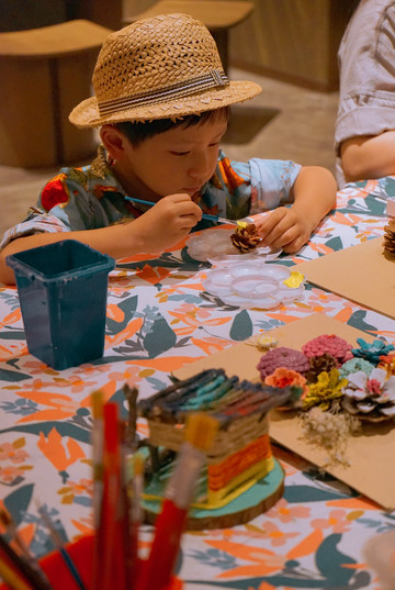 晚上的时候,看到酒店大堂吧有亲子的DIY、绘画活动,能够培养孩子的创造能力和想象力,激发小朋友们对美术的兴趣和热情,同时也能和家长一起增加感情。