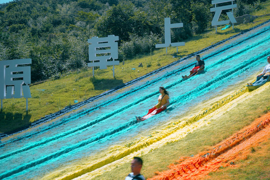 玩了彩虹滑草,很好玩,一定要体验一下!