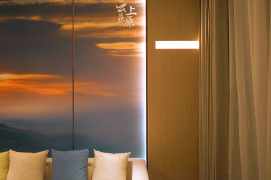 从酒店阳台向西北面的云上草原度假区望去,若是赶上好时节,还能看见白绵云海绕山腰而翻腾,索道破云或出或进,仿佛长龙出海又绕天。