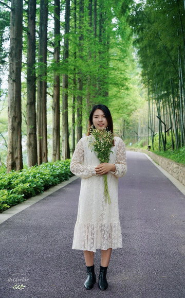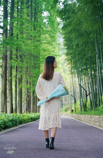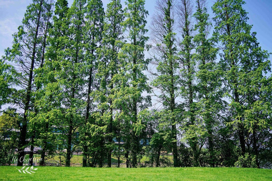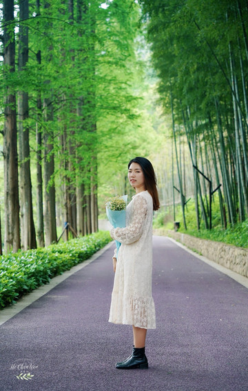 两旁的水杉大道,特别的美,小姐姐手捧一束花,分分钟钟拍出大片。