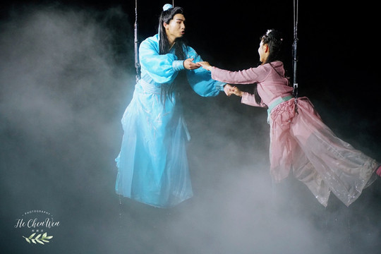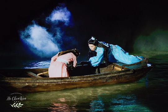 最后一幕——九姓渔民的伟大爱情故事,让全场观众动容和震撼!动容的是男女主角最后的爱情结局,震撼的是《江清月近人》实景演出天降水帘的大场景。