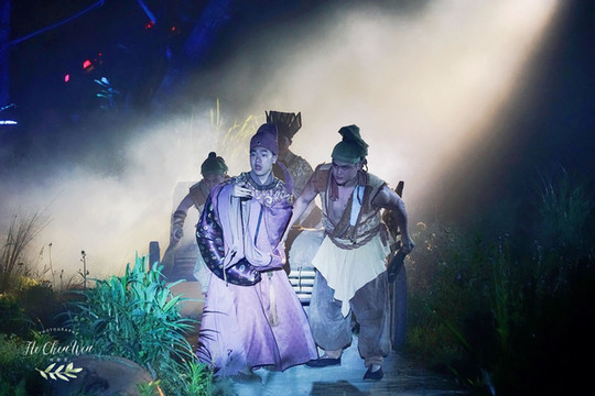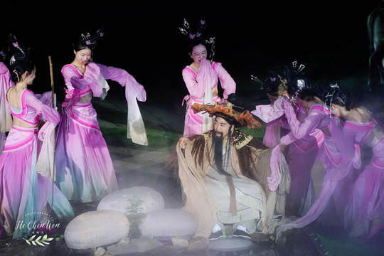《江清月近人》整台演出为环岛行进的沉浸式演出,由“江、清、月、近、人”五个演区,构成一台串珠分布而又相互关联的完整实景演出。