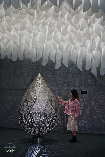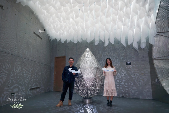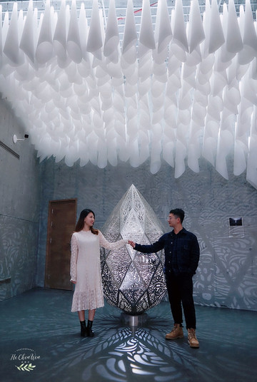✔入口的水滴蛋雕。镂空的云纹和水波纹借助光投射到墙壁,超级适合拍照。