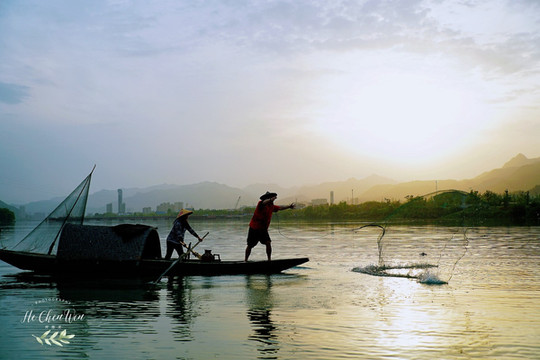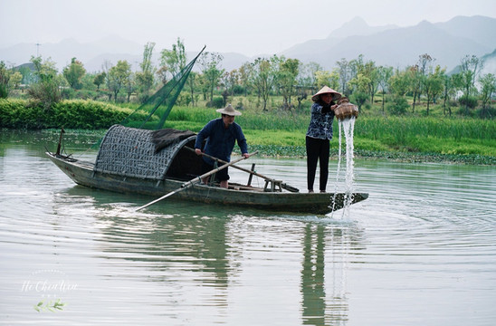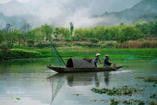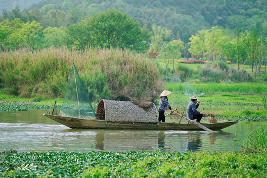 傍晚有雾的时候特别美,还可以拍渔夫模特,只撒网不打鱼。渔舟唱晚,雾漫仙境,乡村时隐时现,让人仿佛置身仙境,故而又有“烟渚之江”的美名。