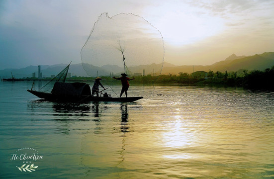 我们早早的预约好了这位名副其实的渔夫模特,只见渔夫叼着烟,就开始准备撒网捕鱼啦。模特特别的专业,还会告诉我们哪个角度拍比较美,连续几次撒网,都是撒的特别好,渔夫还打趣说:撒了十几年的网,从来都是只撒网不捕鱼,专门捕的美人鱼,惹得大家开怀大笑。