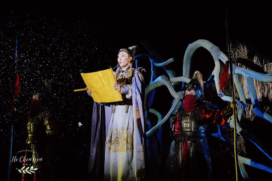 其间演员、灯光,若隐若现、虚实无缝、移步易景,时而鲜活生动地再现了古“ 建德 人”逐鹿于清江花海;时而转至唐朝时期,孟浩然与李白起舞邀月,展现了 建德 悠久的历史底蕴和时代魅力。