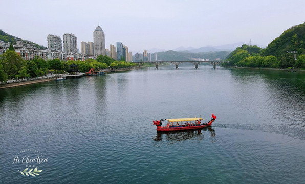 新安 江龙舟漂游码头位于江滨公园风月轩码头,盛德广场旁江滨公园,漂游的整个行程约6千米,游览时间1小时左右。