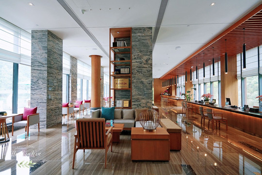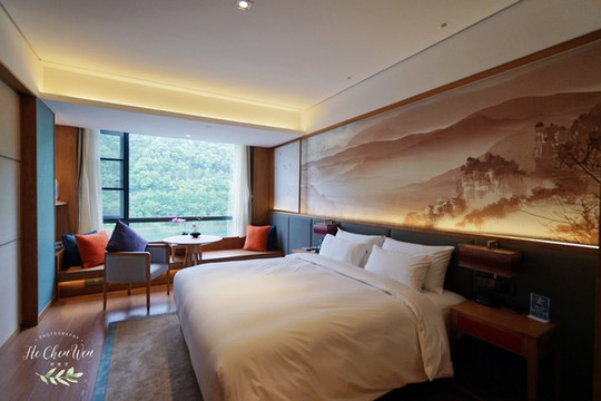 酒店大堂置于最高楼层,透明的电梯正好面向 新安 江,乘电梯好似练就轻功,漂浮江面。房间宽敞明亮,推开窗就是 新安 江,视野非常的好。