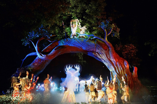 沉浸式环岛演出,”0”距离的实景演出,内容围绕 建德 的时空穿越。月亮岛上云雾缭绕,演出场景绘声绘色,再搭上配音、声乐和灯光,我恍惚了。真是穿越到百年,和原始人共舞,与剧中人共情!