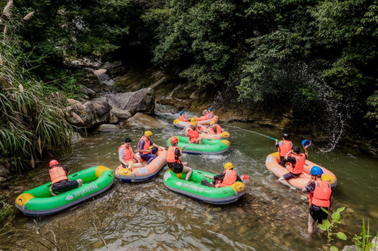 在起漂点,这里的工作人员会帮忙穿上救生衣带上头盔,确保漂流的过程中的绝对安全。穿戴好安全装备,坐上充气筏,就能开始刺激的漂流啦!如果正好是周末,一艘艘充气筏下水,百舸争流的场面也在这里形成了一幅美好的画卷。