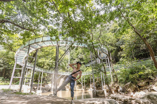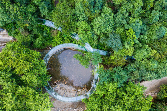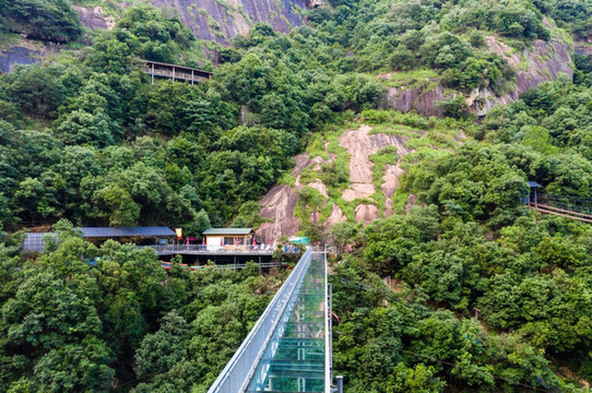 走在玻璃桥上,没有步步惊心的惊险,但也同样能感受到在半空中俯瞰这里的美景,如果雨后来到这里,玻璃桥周边烟雨迷蒙,颇有一种架设在云中的感觉,走过玻璃桥,也很有一种穿过仙境的奇妙感觉。