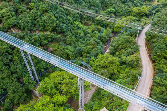 在玻璃滑道,还能通过透明的玻璃看到两边的绿树,看到滑道下的河道和流水,也是非常不错的观景体验。