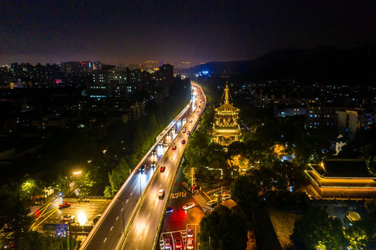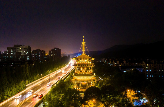 晚上的鼓楼,加上了灯饰,灯火璀璨,在 杭州 的街头,有着一种宁静的璀璨。