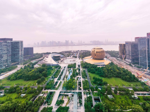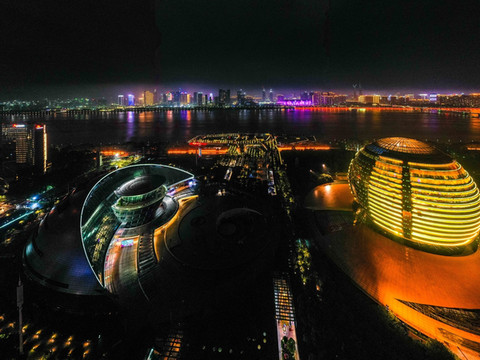 在洲际酒店旁边就是 杭州 大剧院,用了月亮形状的设计,如果在高空中看下去,有一种日月同辉的风景与味道。