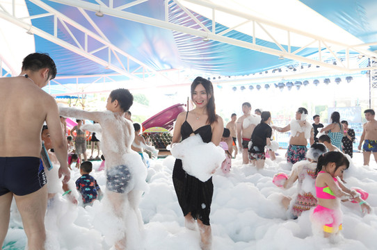 这些项目高度都有几层楼高,在数十米的高空拿着滑板或是坐着救生圈,在水中俯冲,能感受到离心力带来的刺激,在冰凉的水中洗去炎热,在尖叫声中释放出压力,绝对是夏日里头非常解压的一种活动。