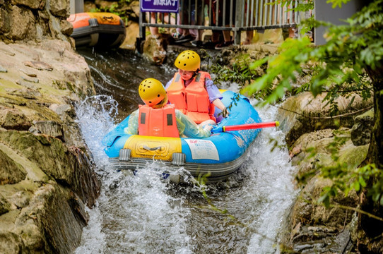 在前半部分,沿着河道快速滑下,更会遇到无数的急弯。拐过急弯,充气筏突然加速,漂流也随之变得刺激起来。华东落差最大的漂流的威力也随之展示出来!