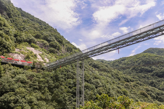 玻璃桥同样横跨两座山,跨过峡谷,走在桥上能看到峡谷的风景。