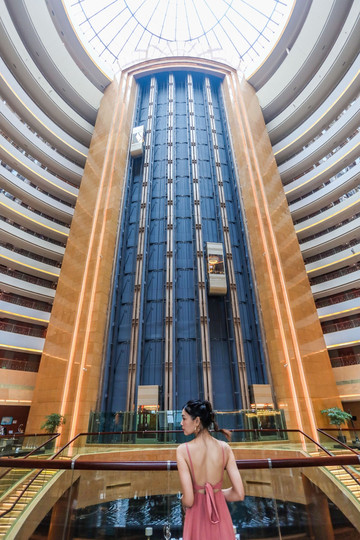 酒店大堂位于五楼,酒店采用了中间镂空的设计,能直接看到 小金 球的屋顶,阳光透过玻璃屋顶洒落到大堂中,给富丽堂皇的大堂带来了不一样的灿烂。