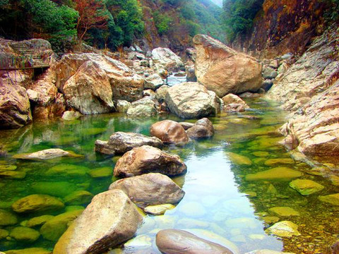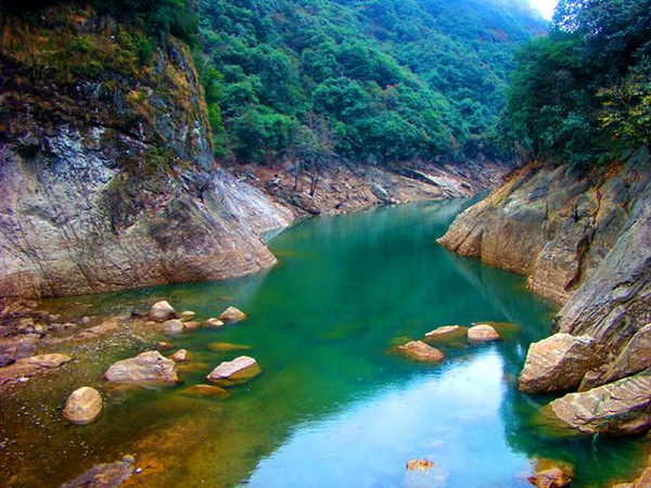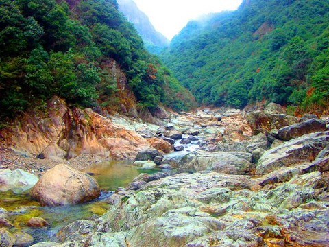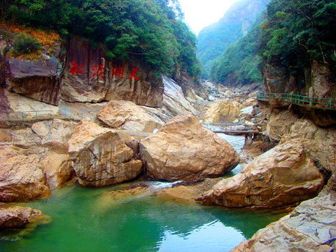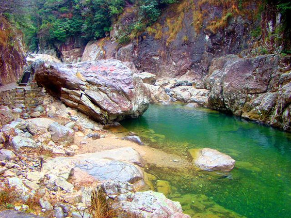 据说,这是一条沉睡了上万年的大峡谷,整个大峡谷位于宁海白溪,全长数十公里,峡谷内人迹罕至,植被丰富,其中黄板滩、翡翠潭、七色潭、月亮谷是大峡谷里最引人入胜的所在。峡谷观光区分为阆风晨渡、松溪洞天、万石布阵、天水三绝、大千世界、丹崖翠谷六大分景区。据说,待白溪水库蓄水后将淹没峡谷,浮舟松溪,看两岸小三峡风光,游天水三绝碧潭,有九寨沟之风情。