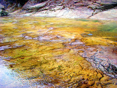 其中“天水三绝”的黄板滩更是给记者留下了深刻的印象。这里溪水色彩要比外面的溪水浓,泛着金黄的色彩,同时随着溪床平坦,水流也平坦,像一块大板,但是只要仔细一对比,人们又会发现这个黄色的色彩非常丰富,几乎每一个潭里的水与其它水都不相同,而且人们越往里面走,溪水的色彩就越显得七彩斑斓,之所以如此,传说因为这里曾是葛洪炼丹洗丹的地方。