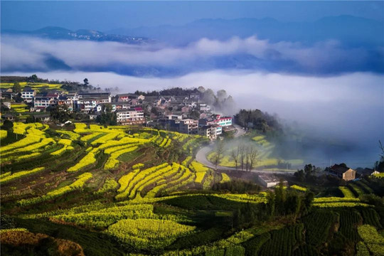 黄灿灿的油菜花,遍布梯田,