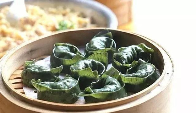 出笼的青汤包,手还来不及感受它的热度,便一口塞进嘴里,满嘴的“青”香。