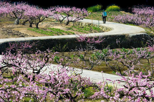 穿行于桃林中,