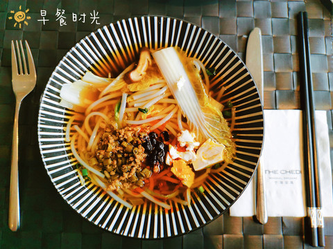 从我们的房间去餐厅,必须要电频车+公务车,穿过村庄,跨过桥,翻了一座山头。