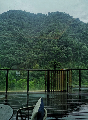 第三日早餐后,爸爸带着玥去玩了,我们仨从餐厅雨中漫步到天际泳池。